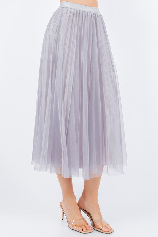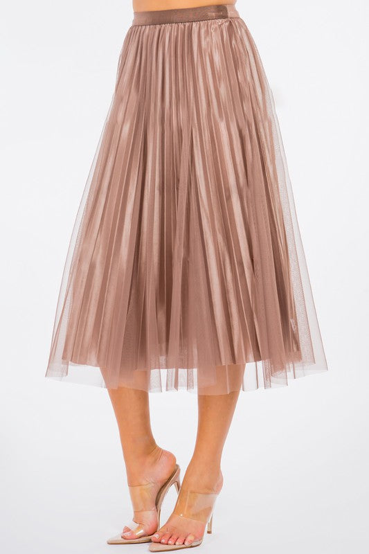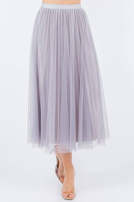 Two beautiful skirts in one! This lovely ribbon and tulle skirt can be worn either with the tulle or ribbon side front facing. Both sides are as lovely as they are professional. Style with a form fitting top, a warm and cozy sweater, a chic white tee, a denim button up tied in the front, you’ll soon find the options are limitless with this beauty! The beauty is in this skirt's sweet simplicity.
