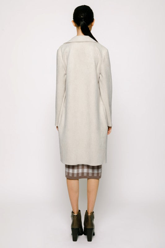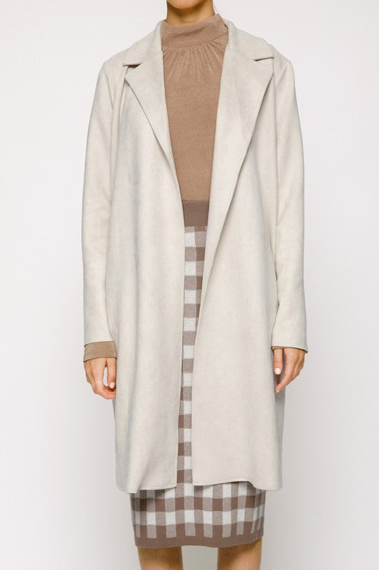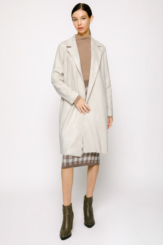 Suede collar jacket with hidden side pockets. Sleek and polished. You'll love the look and feel of our Audrey Jacket. Neutral color and clean lines make it the perfect jacket to wear over any outfit!
