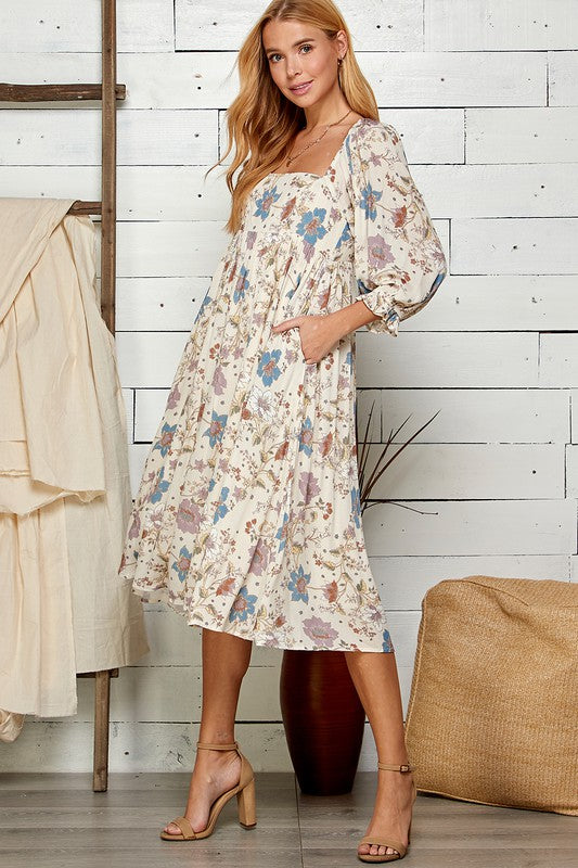 Adorned by the loveliest of blue, pink, and white flowers, our Bella Rose dress is cute as a button. The dress features a square neckline, soft and flowing fabric that will sway with each movement along with gentle and feminine sleeves. This dress is as comfortable as it is feminine!