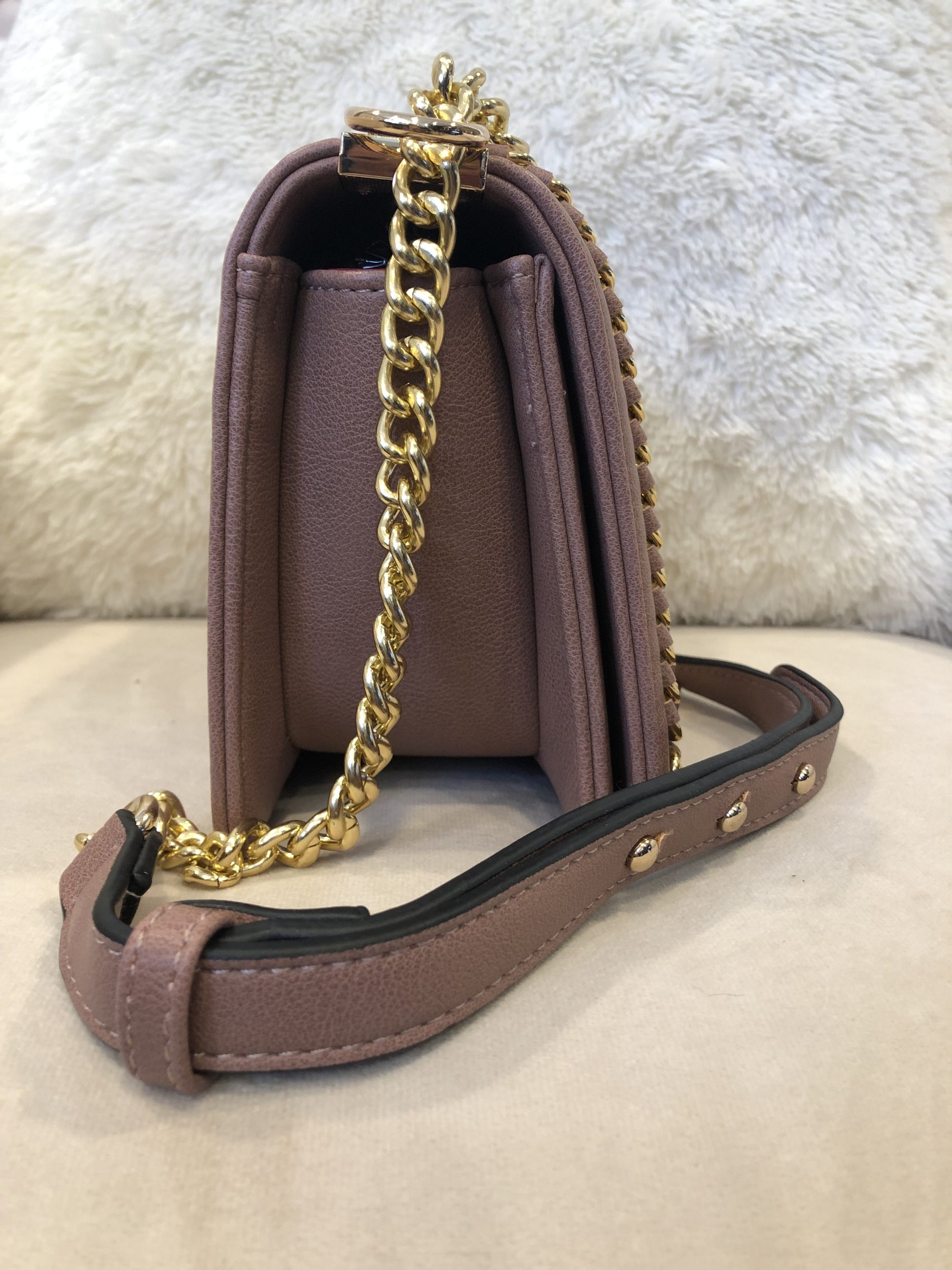 - Chain link shoulder strap can be adjusted to become a crossbody bag