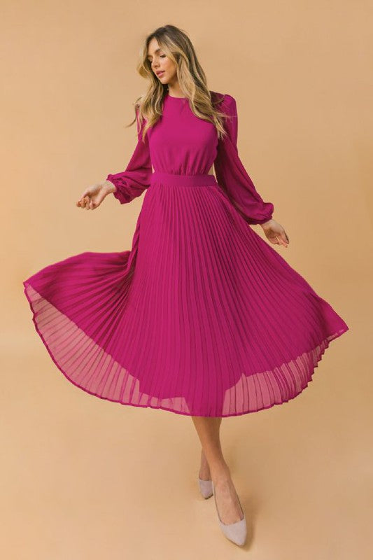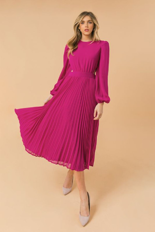 Flirty and chic! You’ll fall in love with our Charlotte dress featuring a pleated skirt, round neckline, puff sleeves, side cut out detail, and back zipper closure. This solid woven midi dress is one you’ll want to have in your closet. Slip on a pair of pumps for a fun date night outfit or add a blazer and wear it as a polished work outfit. The beautiful jewel tone is sure to turn heads the moment you walk into the room!