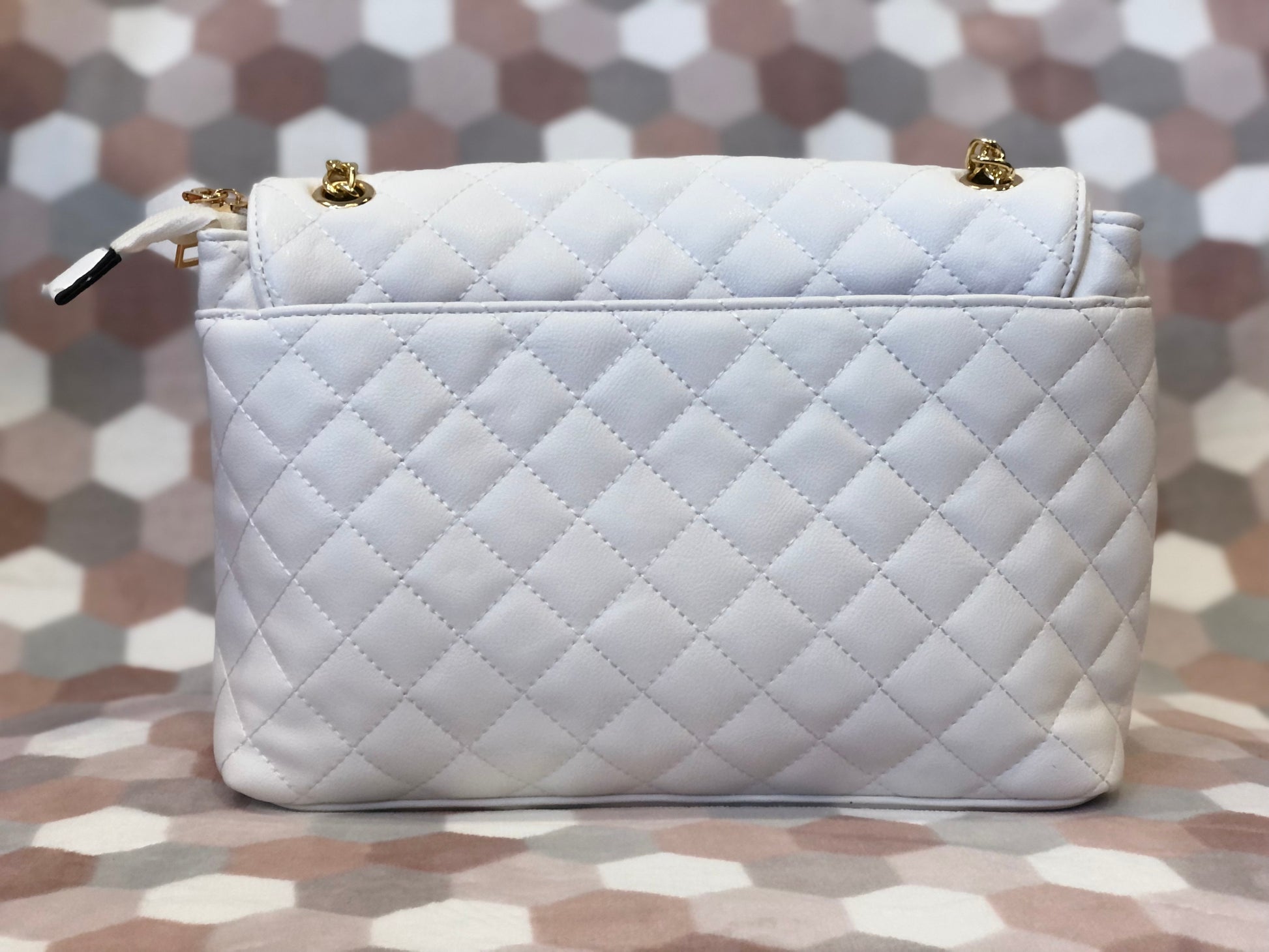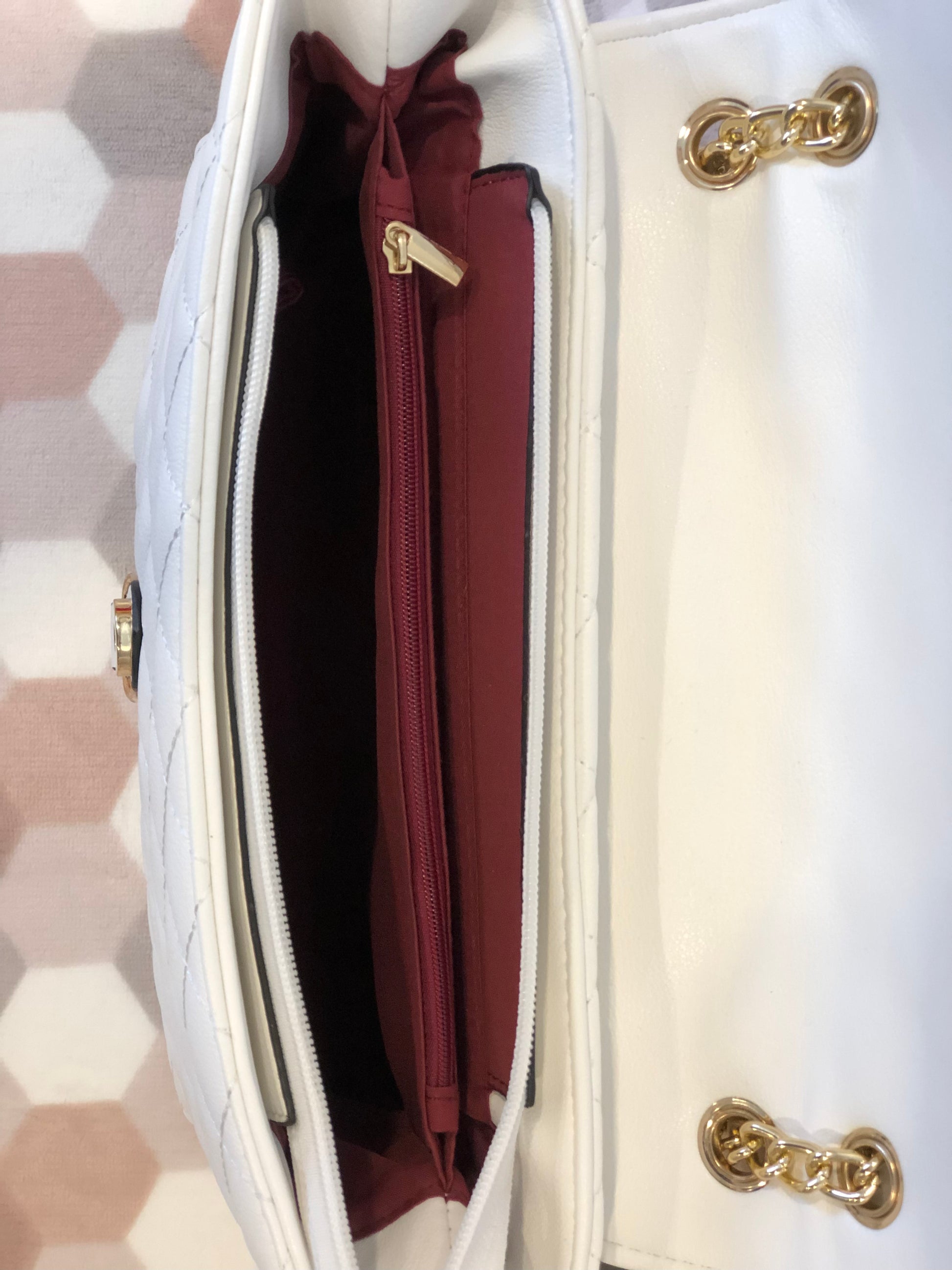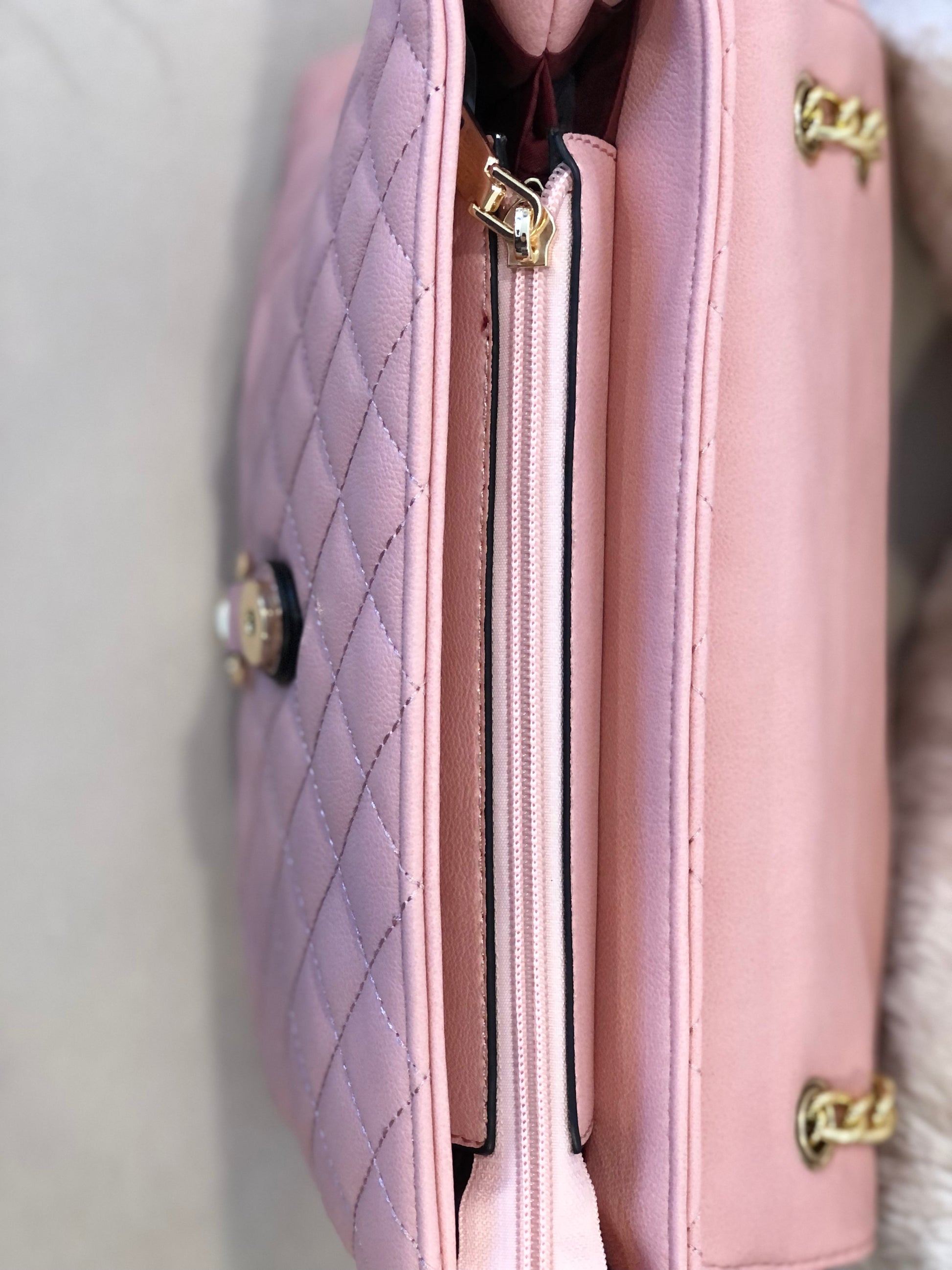 - Chain link shoulder strap can be adjusted to become a crossbody bag