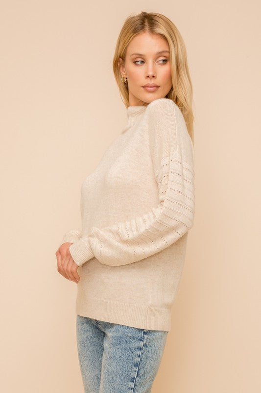 This long sleeve mock neck jacquard sweater top is made of 50% acrylic, 40% nylon and 10% wool. This light weight pullover would pair great dressed down with jeans for a relaxed and comfortable trip to the mountains, relaxing in front of a cozy fireplace, or dressed up for a warm and cozy work outfit layered and paired with slacks and a jacket.