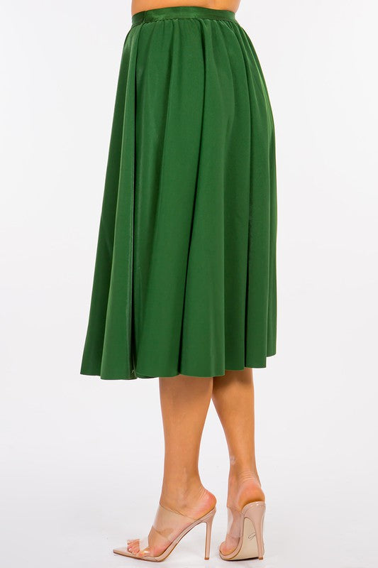 Silky circle midi skirt in emerald green is the perfect skirt for the holidays! Festive and stylish, pair with an ivory top and plaid scarf for a chic outfit that'll be the hit of all holiday parties! This skirt is perfect for all those holiday photo ops <3